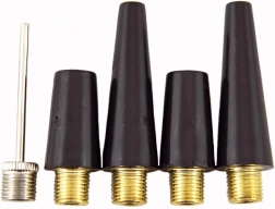 Antgalių rinkinys, įskaitant adatinį vožtuvą ir kūginius antgalius, tinka kamuoliams, žaislams ir čiužiniams pripūsti – tereikia prisukti ir pradėti.