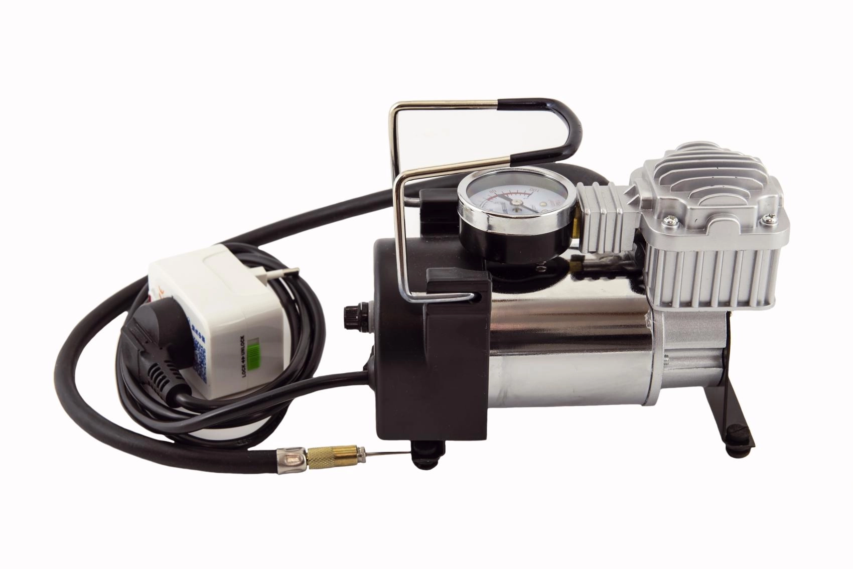 Praktiškas namų pagalbininkas, su kuriuo lengvai ir greitai pripūsite automobilio ar dviračio padangas, sporto kamuolius, vandens žaislus ar čiužinius. Tvirtas metalinis korpusas, integruotas manometras ir stabilios guminės kojelės užtikrina saugų ir patogų darbą. Dėl 35 l/min srauto reikiamą slėgį pasieksite akimirksniu.