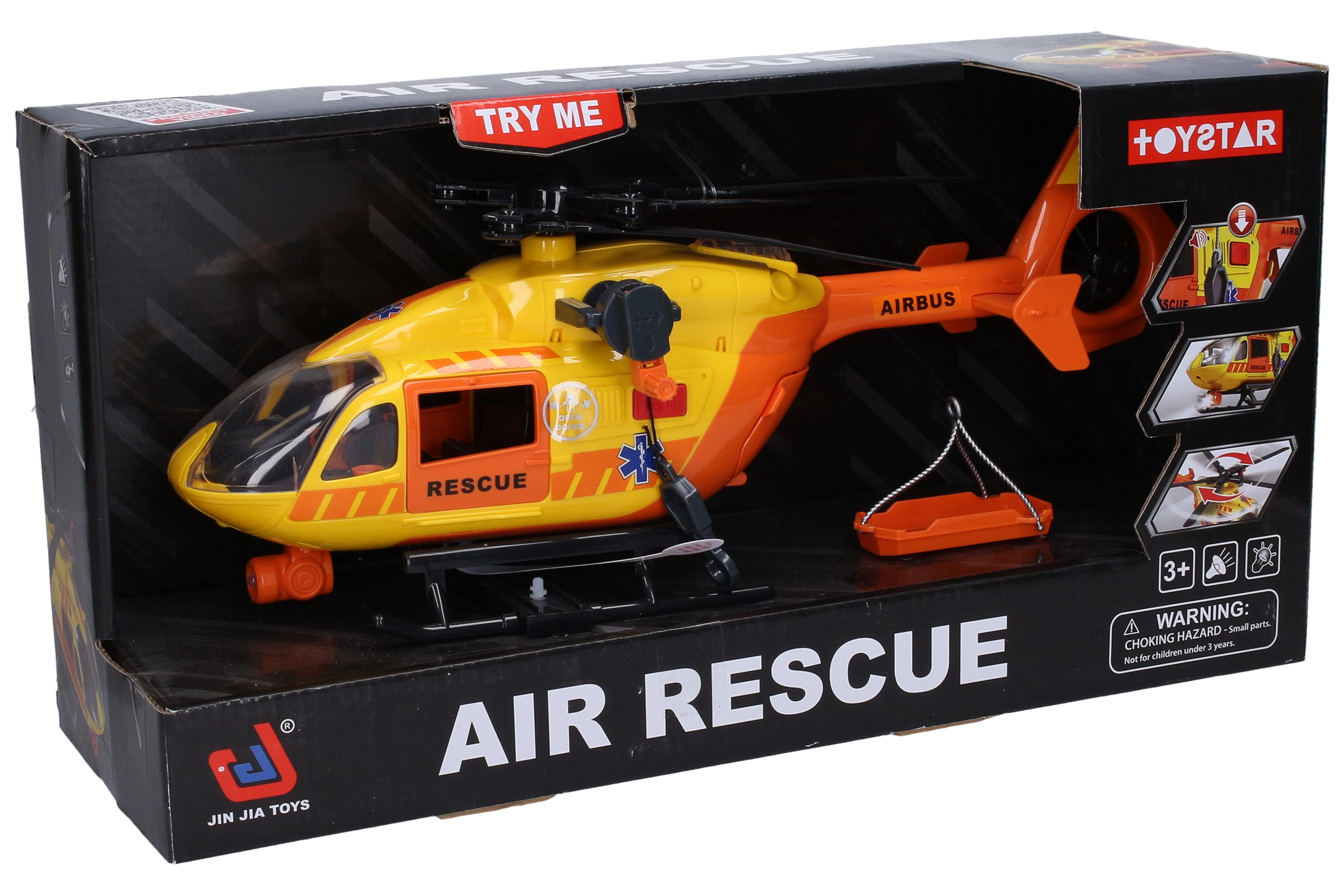 Šis detaliai sukurtas gelbėjimo sraigtasparnis suteikia vaikams daug veiksmo ir vaizduotės. Paspaudus šoninį mygtuką įsijungia šviesos ir garso efektai, kurie sustiprina tikros gelbėjimo misijos atmosferą. Dėl atsidarančių priekinių ir galinių durų patogu pakrauti ir iškrauti įrangą.