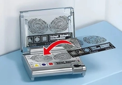 - Interaktyvūs elementai: pirštų atspaudų skeneris su permatomomis plėvelėmis