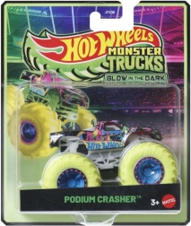 Užgesinkite šviesą ir pramoga prasideda! Metaliniai Hot Wheels Monster Trucks modeliai 1:64 masteliu turi milžiniškus ratus, išraiškingą dizainą ir švyti tamsoje, kad smūgiai, šuoliai ir avarijos būtų dar įspūdingesni. Puikiai tinka vaikams ir kolekcionieriams; atskiri modeliai parduodami atskirai ir gali skirtis spalvomis bei išvaizda.