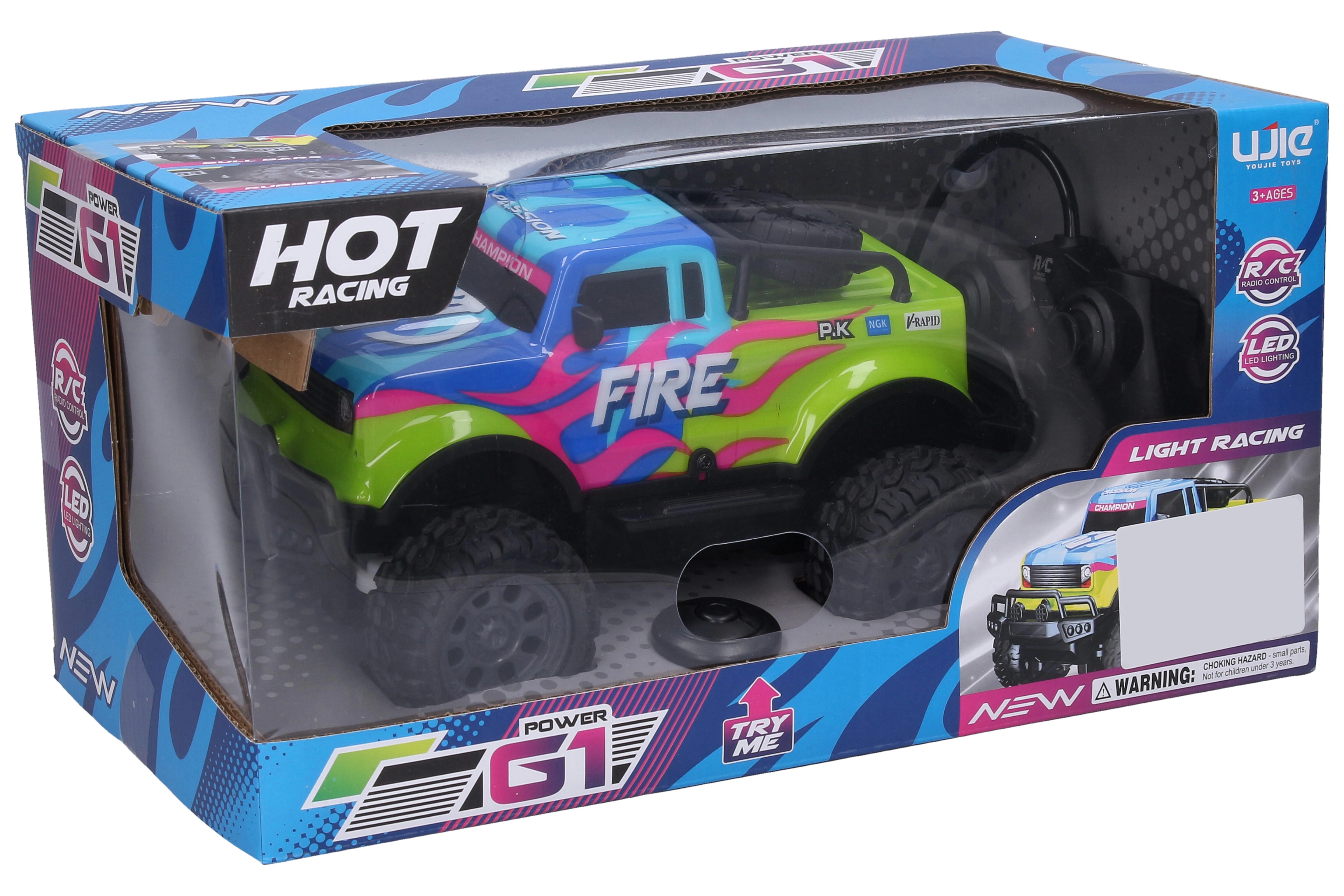 Šviečiantis RC automobilis Fire suteikia puikų žaidimo džiaugsmą vaikams ir suaugusiesiems. Dėl efektingų kėbulo šviesos elementų jis išsiskiria tiek dieną, tiek sutemus. Lengvai valdomas nuotolinio valdymo pultu, veikiančiu 27 MHz dažniu, ir pasiekia greitį iki 10 km/val.