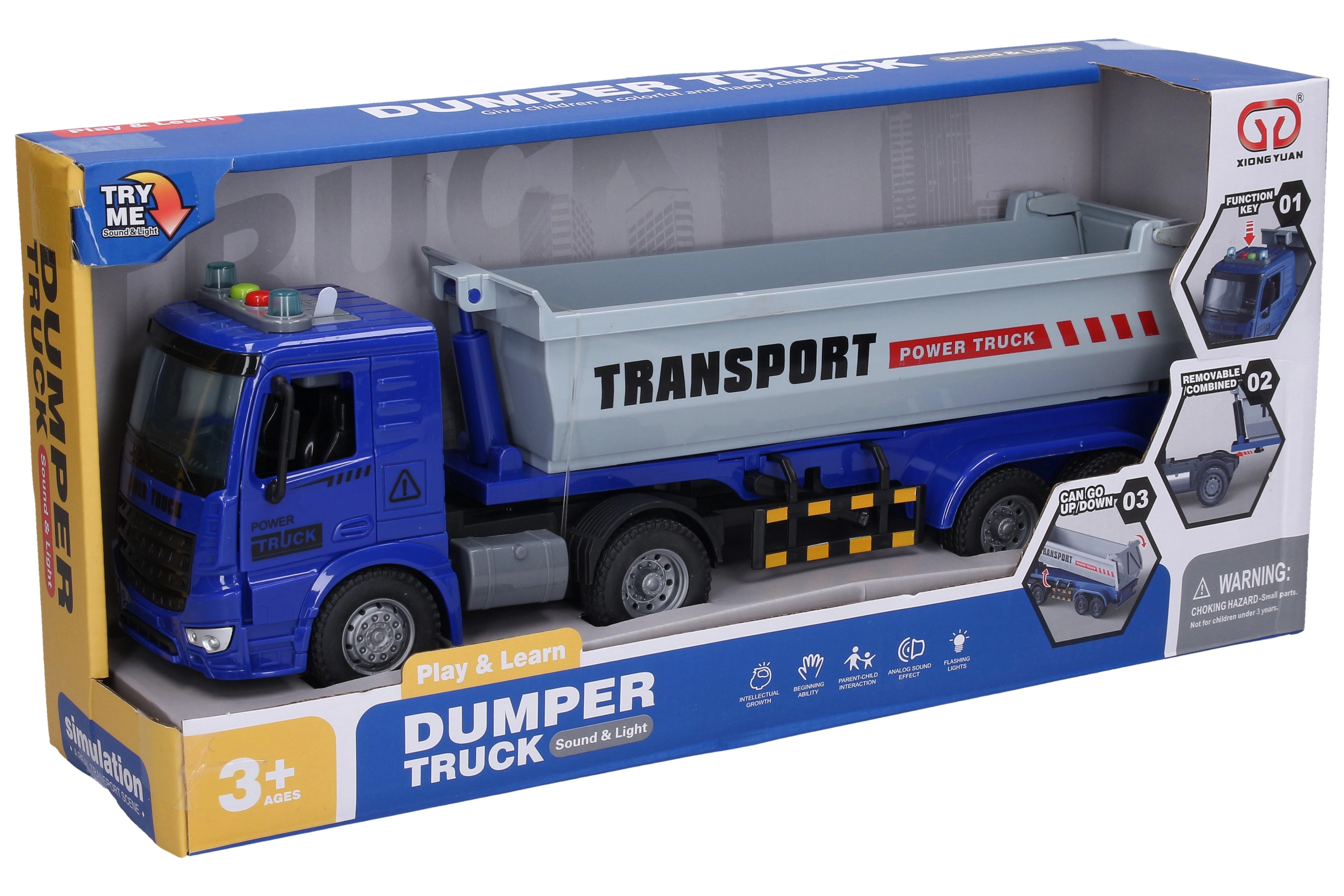 Realistiškas automobilinis vilkikas su savivarte kėbulo dėže pradžiugins mažus vairuotojus ir kolekcionierius. Siūlo šviesos ir garso efektus, inercinį pavaros mechanizmą sklandžiam važiavimui ir atsidarančias duris. Dėl nuimamo priekabos ir funkcinės verčiamos kėbulo dėžės vaikai patirs daug pramogų ir lavins fantaziją žaisdami.