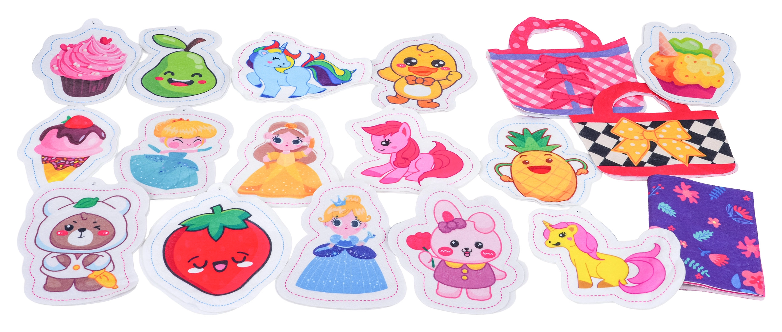 Rinkinyje rasite veltines rankinių paruoštas formas, tekstiles detales, trafaretus pliušiniams papuošimams gaminti, užpildą, rutulinių grandinėlių virveles ir žirkles – viską, ko reikia vaikams kurti savo aksesuarus ir mielus pakabukus. Žaidimas lavina koordinaciją, kantrybę ir kūrybiškumą.