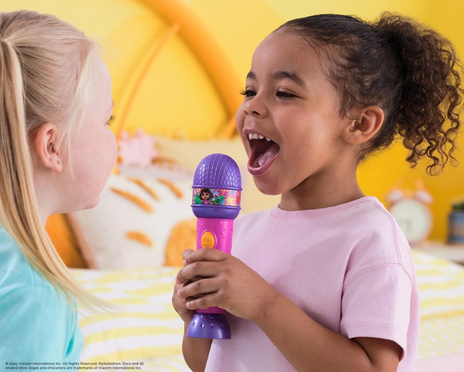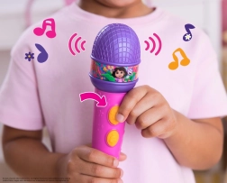Atraskite dainavimo magiją su vaikišku mikrofonu DORA! Šis spalvingas mikrofonas siūlo garso efektus, 5 mėgstamas daineles ir dvikalbes frazes iš DOROS ir jos draugo Butko. Dėl paprasto valdymo vaikai mėgausis dainavimu, šokiais ir vaidmenų žaidimais – idealiai tinka mažai vaikų rankytei, o baterijos yra komplekte.