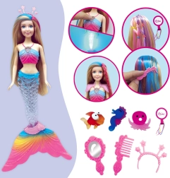 Rinkinyje rasite gausų priedų komplektą – šepetį, šukas, veidrodėlį ir karūnėles – kurie skatina smulkiąją motoriką, kūrybiškumą ir pojūčių lavinimą. Lėlė puikiai tinka vaikams, kurie mėgsta pasakas, spalvas ir magišką atmosferą.