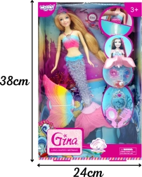Undinėlė WOOPIE Gina atveria vaikams pasakišką pasaulį, kupiną šviesų, muzikos ir fantazijos. Vaivorykštinė judanti uodega su rožiniu peleku, spalvotas viršus ir ilgi šviesūs plaukai kviečia šukuoti, pinti ir kurti šukuosenas. Įmontuoti šviesos ir garso efektai sustiprina žaidimo įspūdį ir paverčia kambarį povandenine karalyste.
