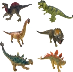 - Komplektas iš 6 figūrėlių – skirtingų dinozaurų rūšių, įskaitant didingą Tiranozaurą ir įspūdingą Triceratopsą.