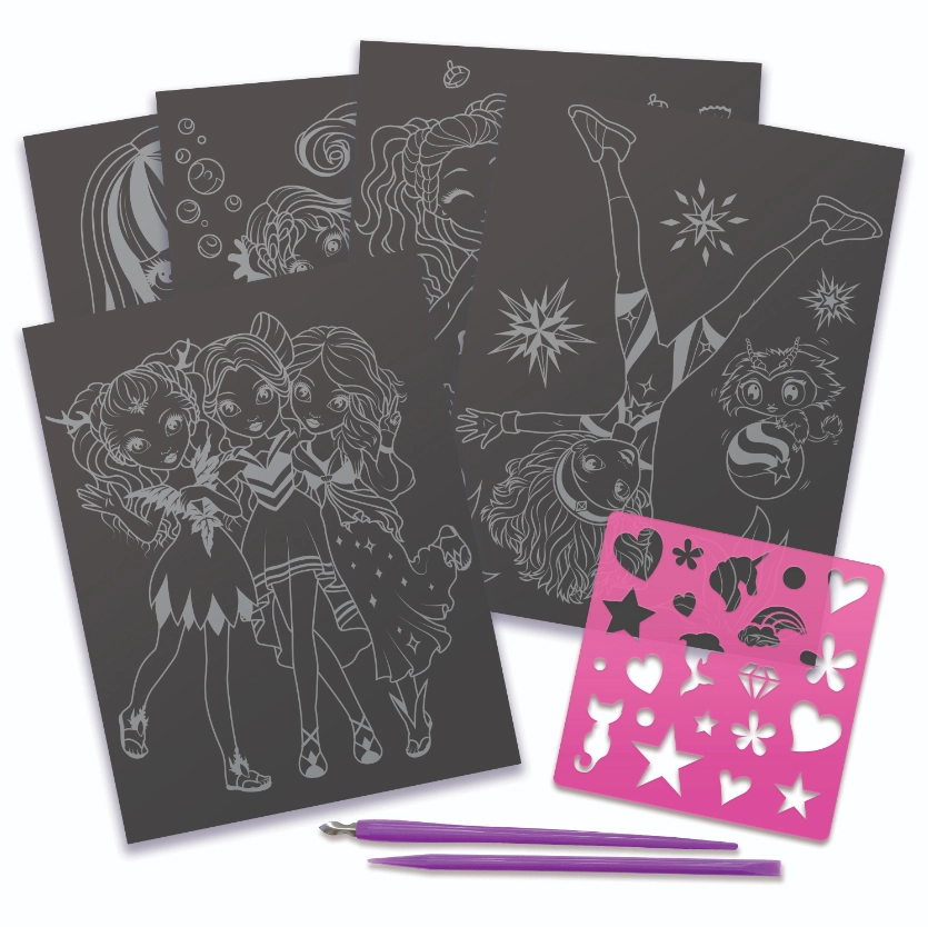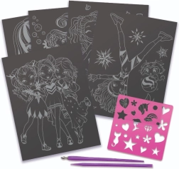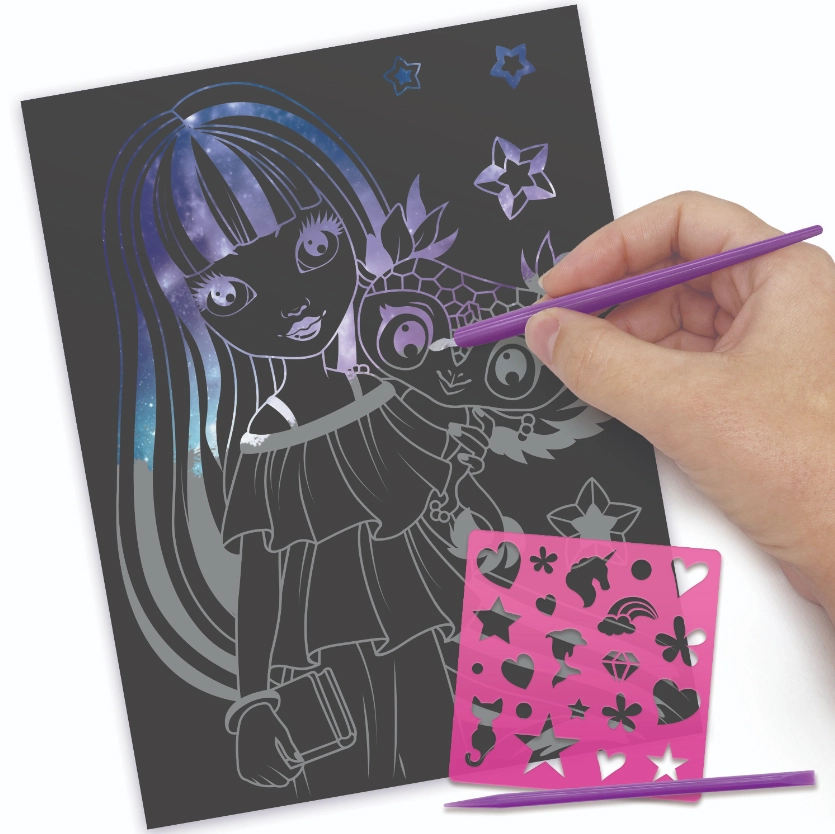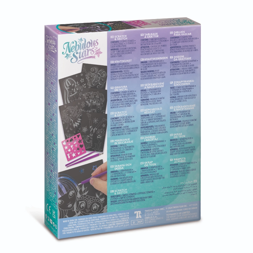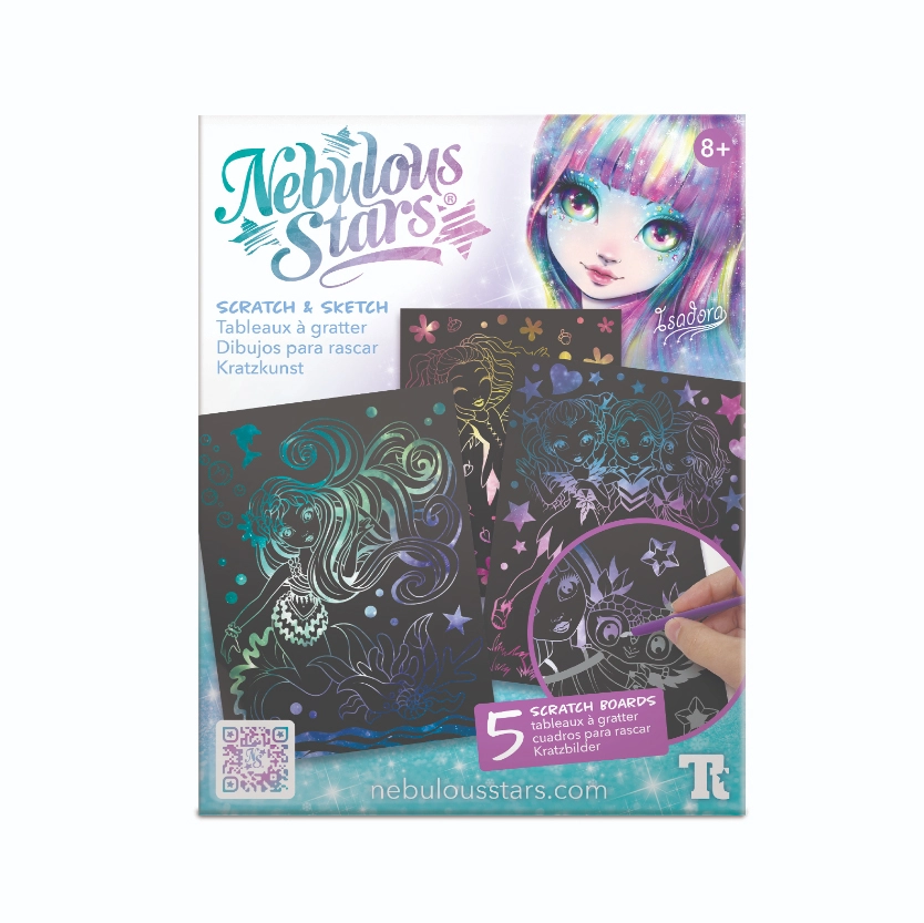 NEBULOUS STARS braižymo rinkinys puikiai tinka kūrybiškumui, smulkiajai motorikai ir kantrybei lavinti. Vaikai, naudodamiesi pridedamais įrankiais, nugramdo viršutinį sluoksnį, atidengdami spalvingus motyvus, ir kuria originalius piešinius pagal trafaretus arba savo fantaziją. Isadoros istorija suteikia kūrybai magiškos atmosferos.