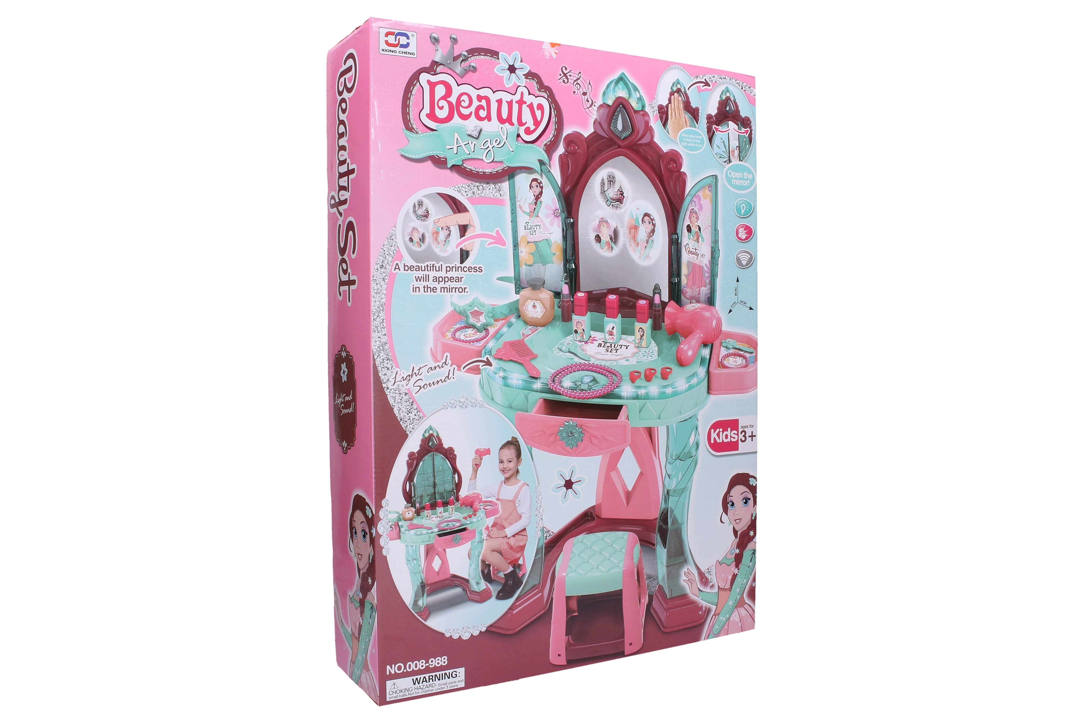 Šis žavus kosmetinis staliukas – puikus pasirinkimas mažosioms puošeivoms, dievinančioms princesių pasaulį. Dėl interaktyvių efektų žaidimas tampa dar smagesnis – tereikia pamojuoti ranka maždaug 5 cm prieš kristalą virš veidrodžio, ir veidrodis magiškai atsivers, o kartu pasirodys princesiški motyvai. Kokybiškas apdirbimas ir saugios medžiagos užtikrina patogų ir saugų žaidimą.