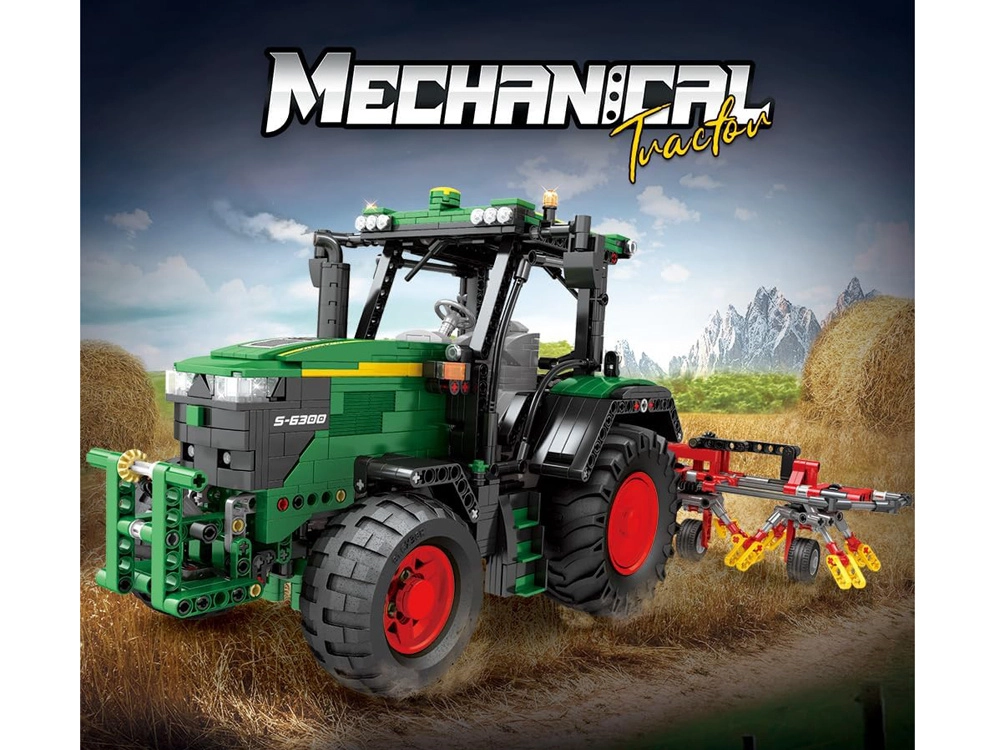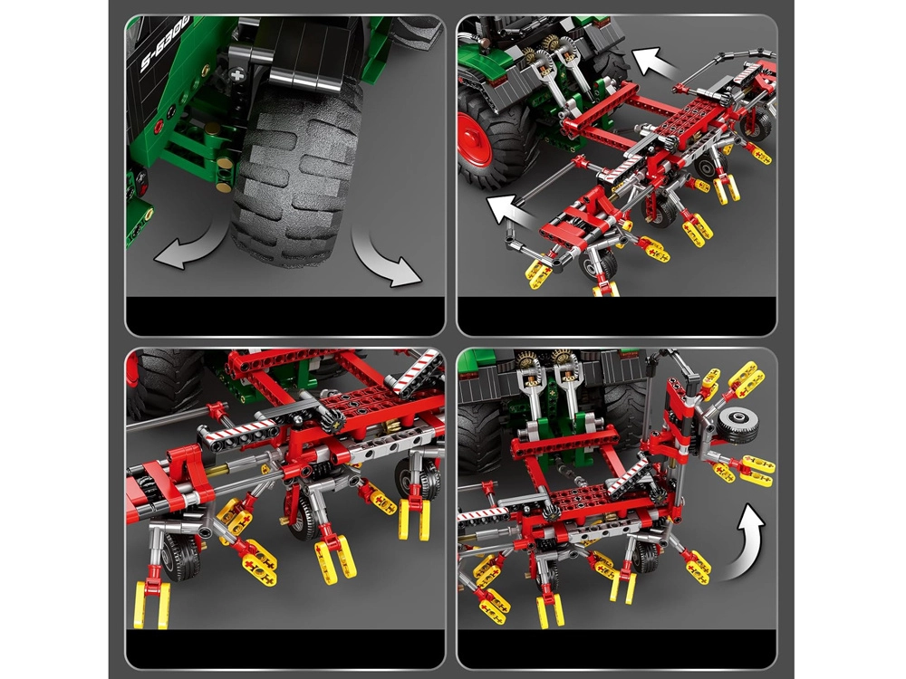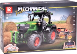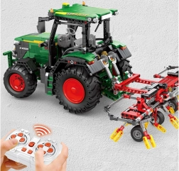 Šis techninis konstruktorius pradžiugins mašinų, mechanikos ir modelių entuziastus. Žalia kabina, masyvios padangos su ryškiu protektoriumi ir tempiamos akėčios ištikimai atkartoja modernų žemės ūkio traktorių. Dėl nuotolinio valdymo ir variklių mėgausitės sklandžiu važiavimu ir interaktyviu valdymu.