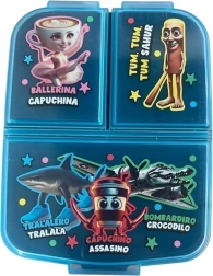 Laikykite užkandžius tvarkingai sudėtus ir šviežius. Šis patvarus daugiafunkcis boksas su Italian Brainrot motyvu siūlo išmanų išdėstymą: vienas erdvus skyrius sumuštiniui ir du mažesni vaisiams, daržovėms ar smulkiems skanumynams. Dėl tvirto atlikimo jis atlaiko kasdienį naudojimą ir netikėtus kritimus.