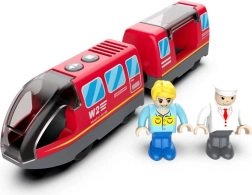 Modernus raudonas elektrinis vaikų traukinys siūlo realistiškas detales, automatinį važiavimą su baterijomis ir magnetinį vagonų jungimą. Rinkinyje yra 2 figūrėlės kūrybingiems siužetams, o žaislas suderinamas su medinėmis geležinkelio trasomis populiarių gamintojų. Puikiai lavina smulkiąją motoriką, koordinaciją ir vaizduotę.