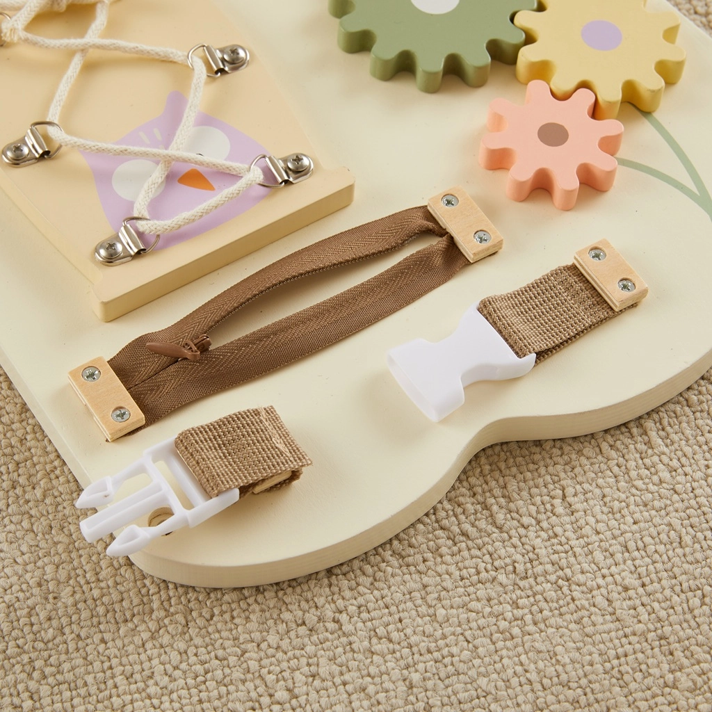 Didelė sieninė motorinė lenta pelėdos formos iš 2Kids Toys suteikia vaikams daugiau nei 10 įvairių veiklų švelniomis pastelinėmis spalvomis. Skatina smulkiąją motoriką, loginį mąstymą, sensorinį suvokimą ir rankų–akių koordinaciją. Dėl kokybiškos medžio, plastiko ir metalo konstrukcijos ji yra saugi, patvari ir puikiai tinka vaikų kambariui ar žaidimų erdvei.