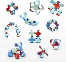 Specialūs magnetiniai lankstai leidžia 360° rotaciją ir fiksavimą 24 pozicijose stabiliai kūrybai. Detalės pagamintos iš patvaraus, perdirbamo sintetinės kilmės popieriaus, atsparios vandeniui, lengvai valomos ir be BPA bei ftalatų. Pridedama kūrybinė brošiūra ir internetinė įkvėpimo medžiaga tolimesnėms konstrukcijoms. Puikiai tinka poilsiui, antistresiniam žaidimui ir smulkiosios motorikos lavinimui.