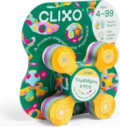 Clixo Tiny & Mighty Jungle – žaisminga, origami įkvėpta magnetinė dėlionė, jungianti lengvumą, lankstumą ir saugumą. Dobilėlio formos dalys dėl stiprių magnetų lengvai jungiasi į 2D ir 3D konstrukcijas ir leidžia 360° sukimosi judesį su fiksacija 24 pozicijose maksimaliai stabilumui. Pastelinės spalvos su grafiniu atspaudu leis konstruoti augalus, gyvūnėlius ir fantastiškas būtybes.
