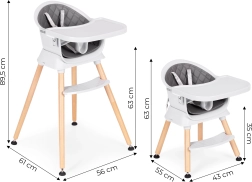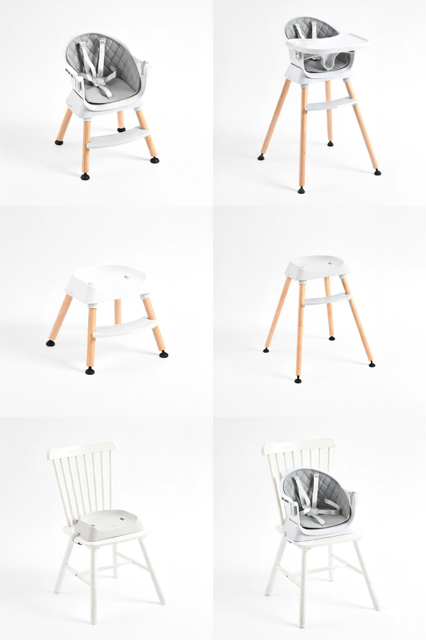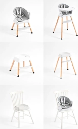 - 6-in-1: aukšta kėdutė, žemas krėsliukas, boosteris, sėdynė be kojų, baro kėdutė, žemas suolelis