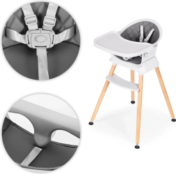 Universali vaikiška ECOTOYS 6-in-1 maitinimo kėdutė auga kartu su jūsų vaiku nuo 6 iki 36 mėnesių. Siūlo 6 funkcijas viename, lengvai valomą dygsniuotą eko odos apdangalą, nuimamą į indaplovę tinkantį padėklą, 5 taškų saugos diržus ir stabilias medines kojeles su neslystančiais antgaliais. Didžiausia apkrova 20 kg ir reguliuojama pakoja užtikrina komfortą ir saugumą tiek valgant, tiek žaidžiant.