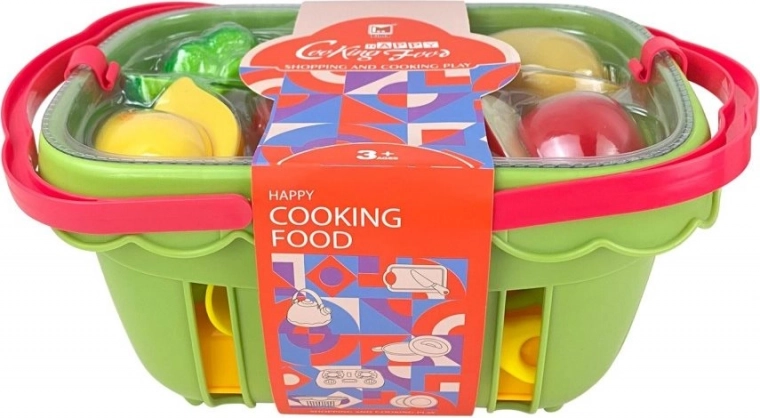 Šis šviesiai žalias krepšelis su pjaustomu maistu – puikus vaikų virtuvėlės papildymas. Dėl maisto su lipniomis juostelėmis vaikai gali saugiai išbandyti pjaustymą ir atskirų dalių sujungimą, kas skatina smulkiosios motorikos raidą, rankos ir akies koordinaciją bei kūrybiškus profesijų žaidimus.