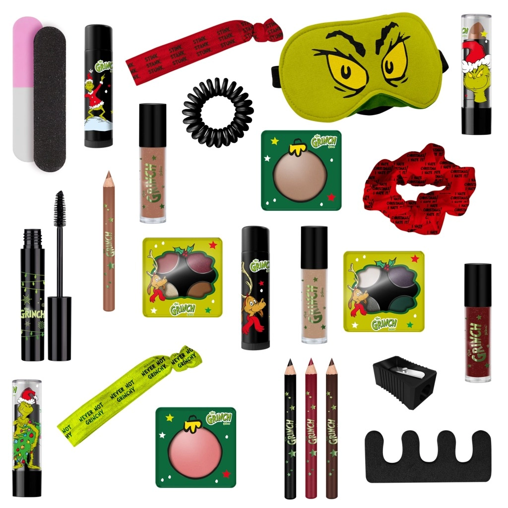 Šis žaismingas advento kalendorius, įkvėptas personažo GRINCH, slepia 24 langelius, pilnus kosmetikos ir aksesuarų. Kiekvieną dieną kurkite vis kitokį makiažą – nuo natūralaus iki ryškaus šventinio įvaizdžio. Dėl plataus produktų pasirinkimo lengvai paryškinsite antakius, akis, lūpas ir nagus, o taip pat papildysite juos praktiškais kasdienės priežiūros pagalbininkais.
