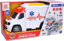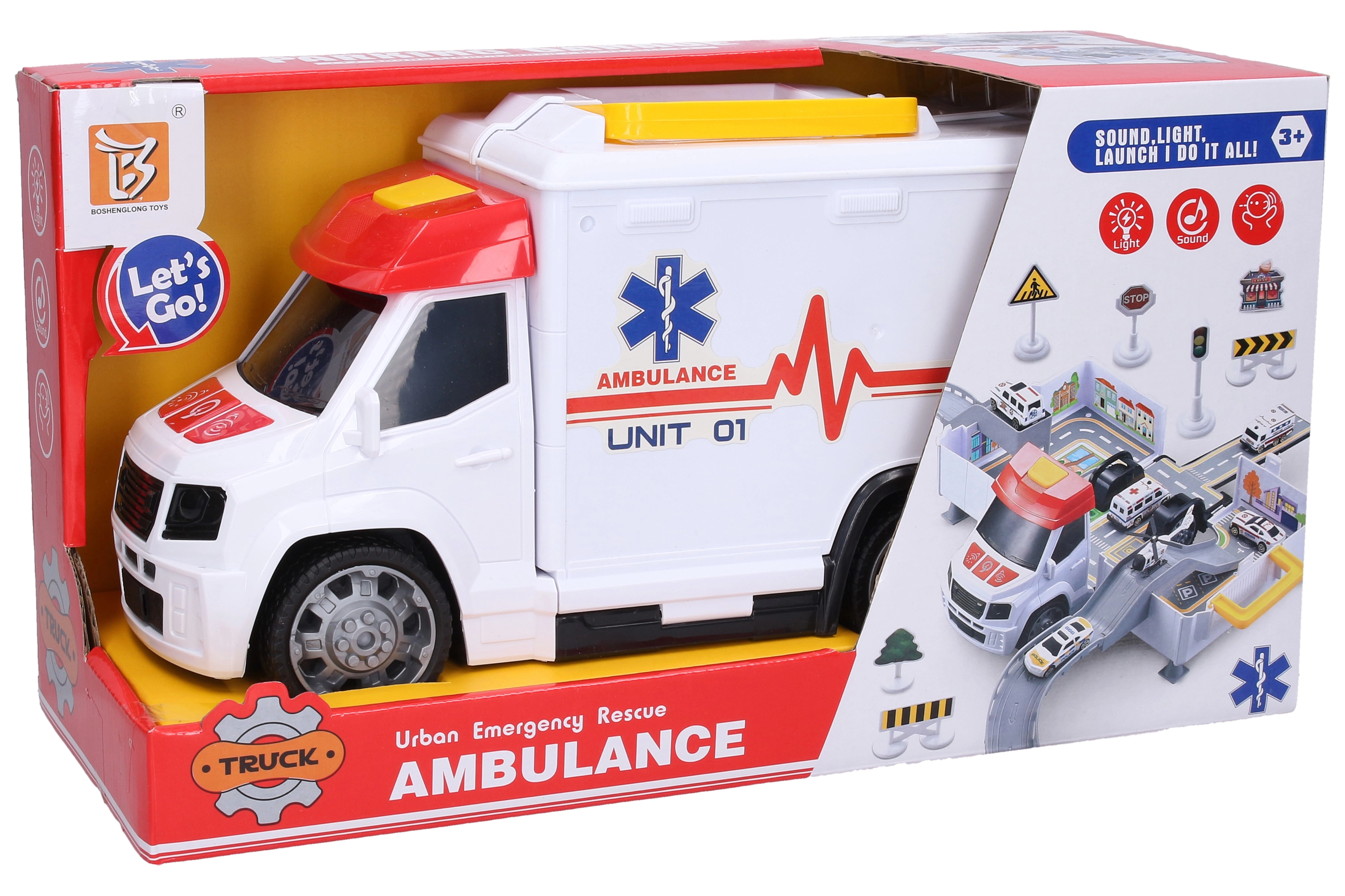 Smagus ir realistiškas greitosios pagalbos automobilis su išskleidžiama ligoninės garažu suteiks vaikams valandų valandas žaidimo. Jis turi šviesos ir garso efektus, aktyvuojamus mygtukais ant variklio dangčio, ir didelį mygtuką ant stogo atrakinimui. Maitinamas 3× AG13 baterijomis. Laisvai besisukantys ratai užtikrina sklandų važiavimą, o išskleidus susidaro ligoninės žaidimų aikštelė su mašinėlėmis ir kelio ženklais.