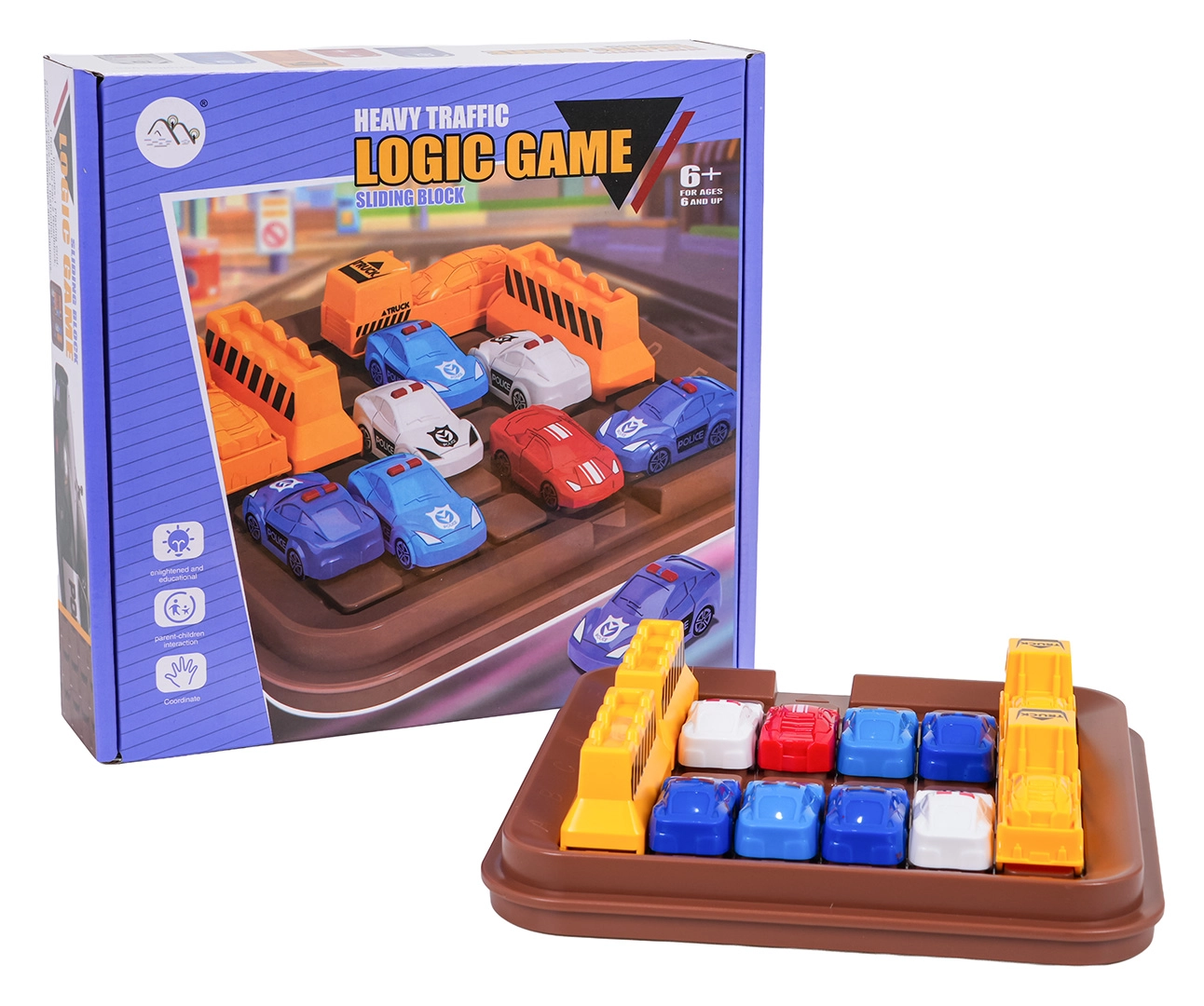 Traffic – mėgstamas loginis galvosūkis, kuriame vaikai žingsnis po žingsnio sprendžia eismo rebusą. Judinkite transporto priemones žaidimo lentoje tik pirmyn ir atgal ir suplanuokite geriausią kelią, kaip ištraukti raudoną automobilį iš parkavimo spąstų. Puikiai tinka loginio mąstymo, strateginio planavimo ir kantrybės ugdymui.