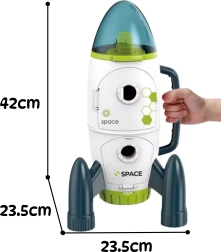 Raketa pagaminta iš tvirto ir saugaus ABS plastiko ir turi patogų laikymo rankeną lengvam nešiojimui. Atidaromas kokpitas ir durys suteikia prieigą prie valdymo patalpos ir apatinio angaro, todėl vaikai gali kurti savo scenarijus ir lavinti kūrybiškumą, akių–rankų koordinaciją ir motoriką. Žaislas tinka vaikų kambariui, darželiui ir kelionėms.