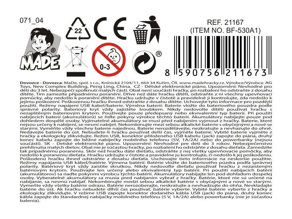 Pianinas siūlo 16 skirtingų muzikinių garsų ir 6 mokomąsias bei demo melodijas, kurios padeda smagiai mokytis. Tempa ir garso valdymas leidžia pritaikyti grojimą pagal vaiko nuotaiką ir gebėjimus. Maitinimas per USB užtikrina paprastą ir patogų naudojimą.