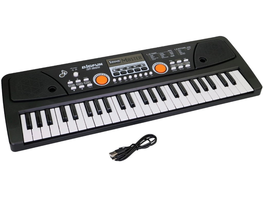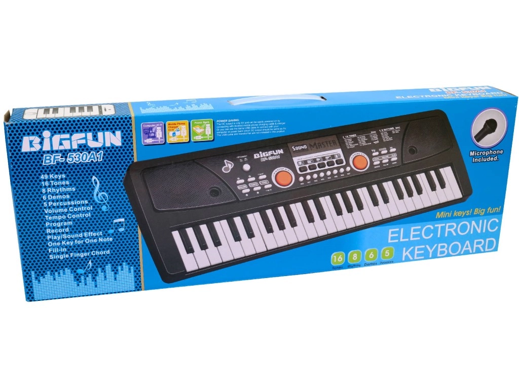 Šis vaikiškas elektroninis pianinas – puikus pirmasis žingsnis į muzikos pasaulį. Dėl 49 klavišų ir gausios funkcijų įvairovės vaikai mokosi grojimo pagrindų, lavina muzikinę klausą, ritmą ir kūrybiškumą. Komplekte yra mikrofonas, tad grojamas melodijas galima iš karto lydėti dainavimu.