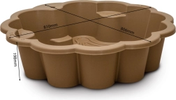Dvi vidinės sėdynės suteikia stabilų ir patogų sėdėjimą, o gėlės forma sukuria patrauklią ir funkcionalią erdvę kasimui, statymui ir kūrybai. Dėl kompaktiškų matmenų smėlio dėžė tinka ir mažesnėms erdvėms – nuo sodų iki terasų ir balkonų.