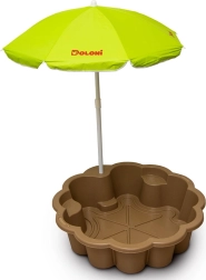Mėgaukitės valandomis pramogų lauke su gėlės formos smėlio dėže, pagaminta iš eko medžiagos, paremtos kviečių šiaudais. Dėl skėčio nuo saulės ji suteikia malonų pavėsį, o dvi integruotos sėdynės užtikrina patogumą. Kompaktiški matmenys idealiai tinka sodui, terasai ir balkonui.