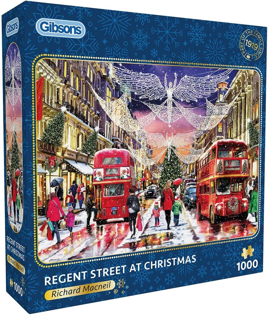 Atraskite detalią žiemišką ikoniškos Regent Street gatvės sceną su kalėdine puošyba. GIBSONS dėlionės garsėja aukšta gamybos kokybe, tiksliomis išpjovomis ir sodriomis spalvomis, dėl kurių dėlioti malonu nuo pirmos iki paskutinės detalės.