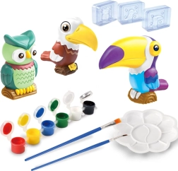 Atraskite smagų kūrybinį rinkinį vaikams, su kuriuo lengvai susikursite ir papuošite savo 3D egzotinių paukščių figūrėles. Pakuotėje rasite formas, gipsą, dažus, teptukus ir paletę – tereikia įpilti vandens ir pradėti kurti. Ši veikla lavina smulkiąją motoriką, kūrybiškumą ir kantrybę, o rezultatas – spalvingos pelėdos, tukanas ir kiti tropiniai paukščiai, puikiai tinkantys kaip kambario dekoracija.