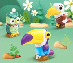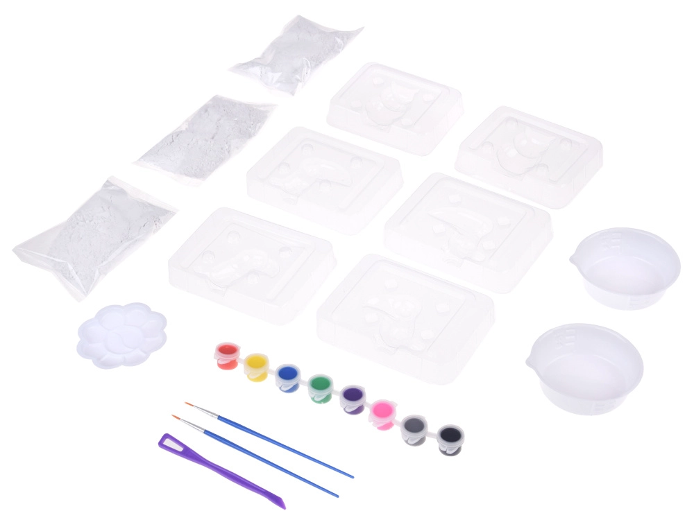 Viską, ko reikia, rasite pakuotės viduje: paukščių formas, gipso maišelius, matuokles, paletę, 8 dažus, 2 teptukus ir modeliavimo įrankį/peiliuką. Sukietėjusius liejinius galite nušlifuoti, išlyginti ir papildomai papuošti. Baigtos figūrėlės puikiai tiks kaip dekoracija arba rankų darbo dovana.