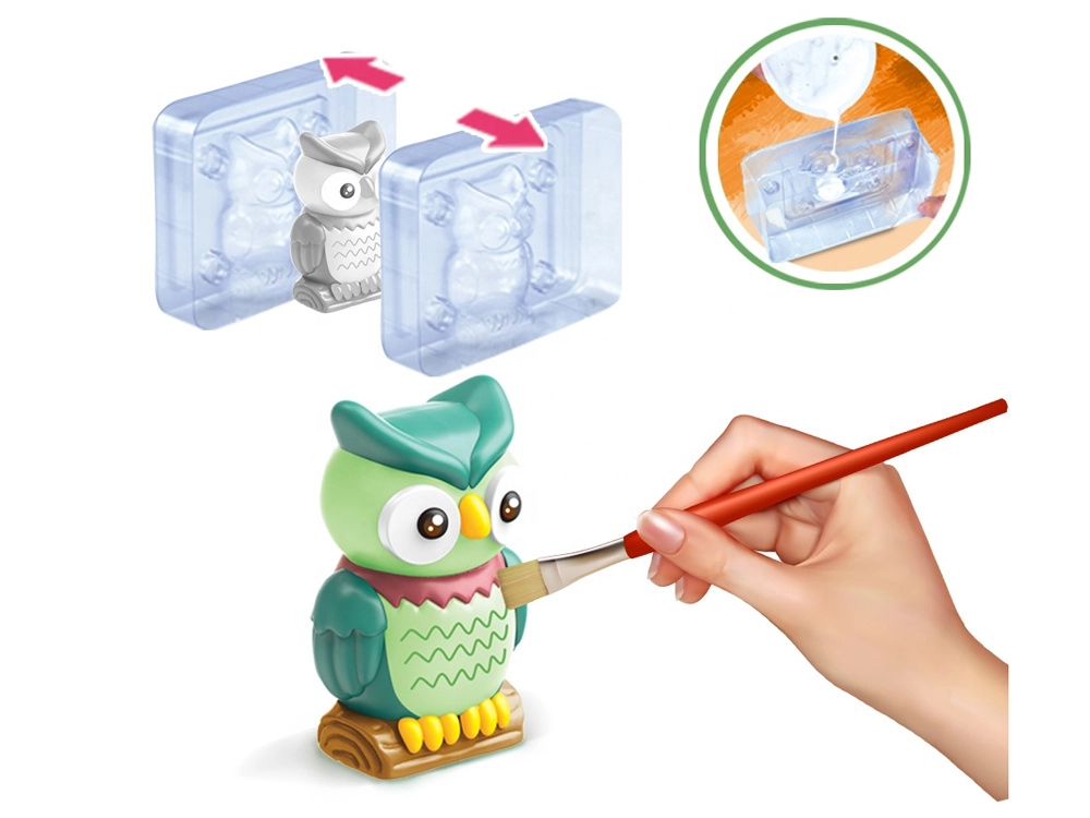 Nuo masės įpylimo į formą iki galutinio dekoro – pavyzdinis pelėdos projektas skatina vaikus kantrybei ir kruopštumui, o kūrybos procesas įtraukia kiekviename etape.