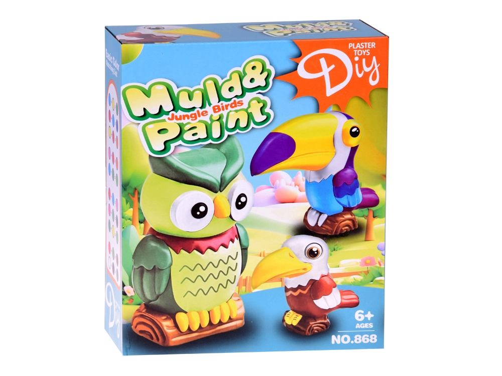 Kurkite žingsnis po žingsnio originalias gipsines egzotinių paukščių figūrėles ir vėliau jas nuspalvinkite pagal savo fantaziją. Rinkinys sukurtas taip, kad liejimo procesas būtų paprastas, o dažymas – malonus ir saugus. Puikiai tinka kūrybiškam popietės užsiėmimui su vaikais ar kaip dovana.