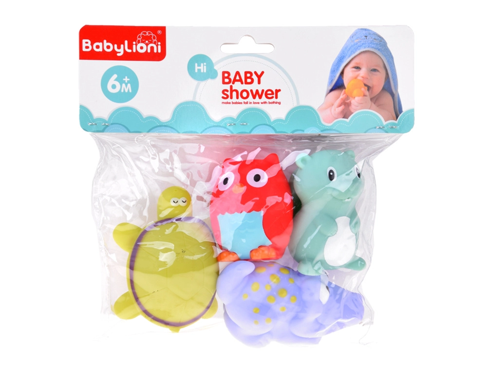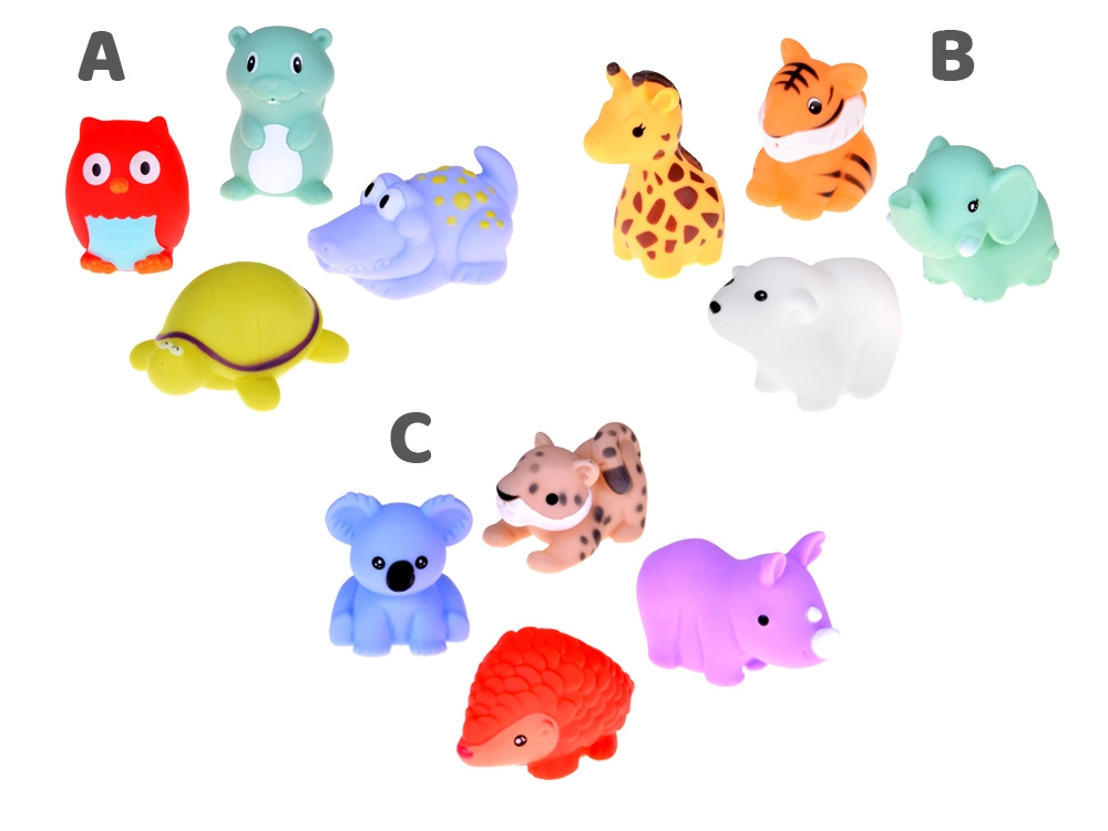 Gyvūnėliai pagaminti iš netoksiškos, maloniai minkštos medžiagos, švelnios vaiko odai ir tinkamos pirmajam žaidimui vandenyje.