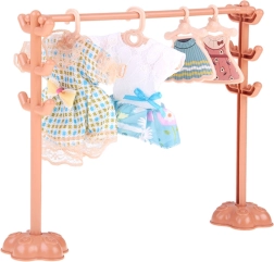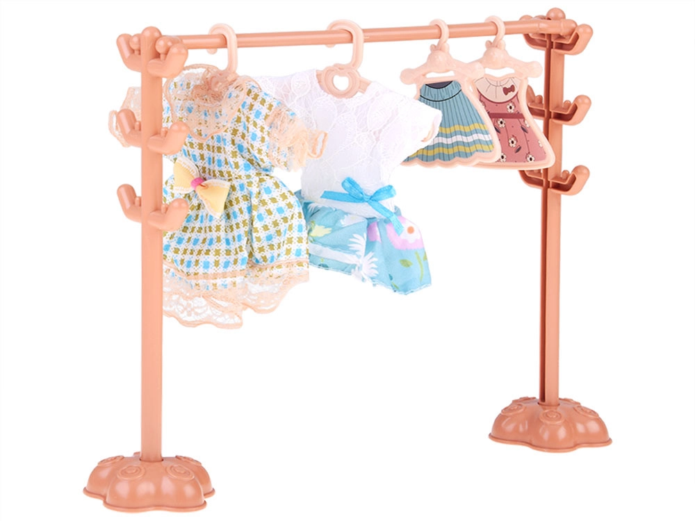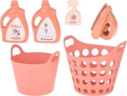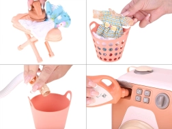 Rinkinyje yra krepšeliai, „ploviklių“ buteliukai, lygintuvas su lyginimo lenta, pakaba ir rinkinys pakabų bei drabužėlių lėlėms – viskas skalbimui, džiovinimui ir lyginimui.