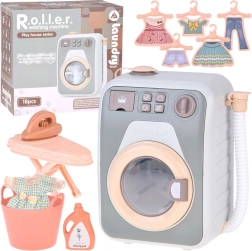Ši interaktyvi 2 viename skalbimo mašina su džiovykle pastelinėmis spalvomis ištikimai atkuria tikrus prietaisus: turi valdymo skydelį, mygtukus, pasukamą ratuką, atidaromą būgną ir talpyklas skalbimo milteliams bei vandeniui. Vaikai gali „skalauti“ realistiškai – pripildyti būgną vandeniu, paleisti programą ir pabaigoje išleisti vandenį žarnele su uždoriu.