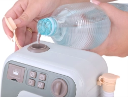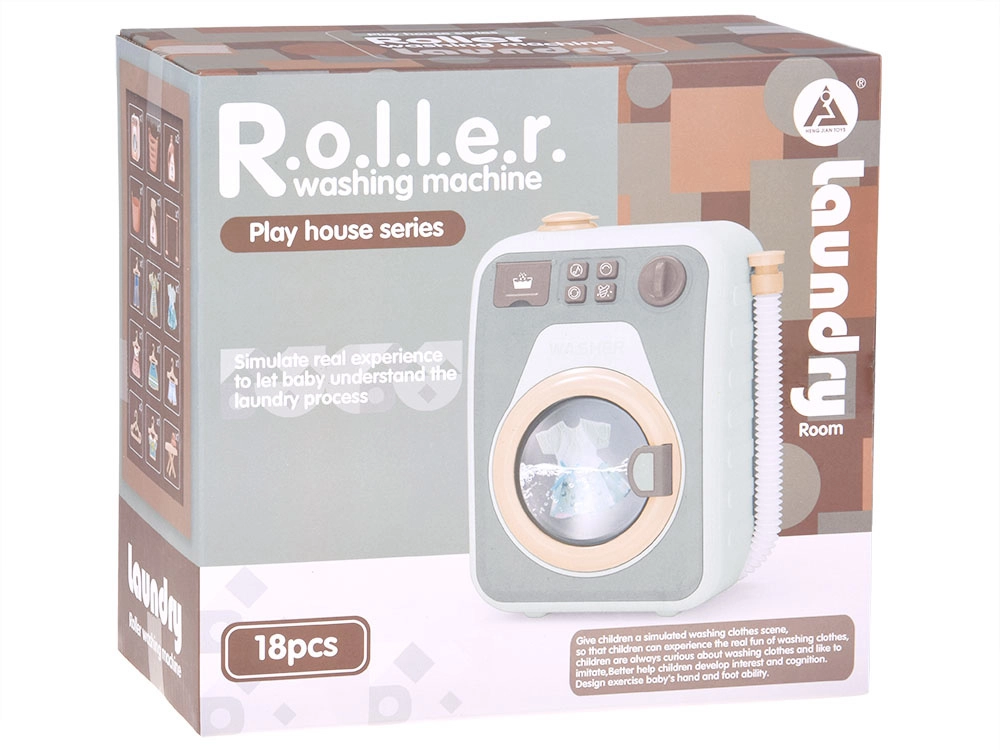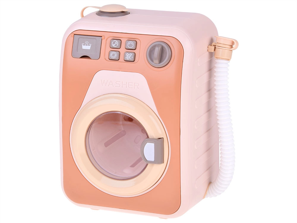Į skalbyklę galima įpilti vandens per viršutinę angą, o po „skalbimo“ jį lengvai išleisti žarnele su rankenėle ir kamščiu. Vaikai gali išbandyti visą skalbimo ciklą tarsi iš tikrųjų.