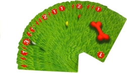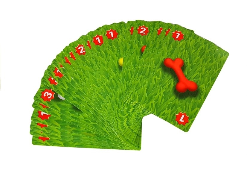 Ryškios spalvos ir lengvai sugriebiami kaulai daro žaidimą puikiu pasirinkimu vaikams. Dubenėlis su įspėjamuoju užrašu kuria nuotaiką.
