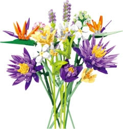 Paverskite savo namus tropikų rojumi. Su šiuo rinkiniu pastatysite egzotinę gėlių puokštę, kupiną sodrių spalvų – violetinės, oranžinės, baltos ir žalios. Kruopščiai suprojektuotos detalės ištikimai atkuria žiedų ir lapų struktūrą, todėl galutinė kompozicija atrodo natūraliai ir elegantiškai.