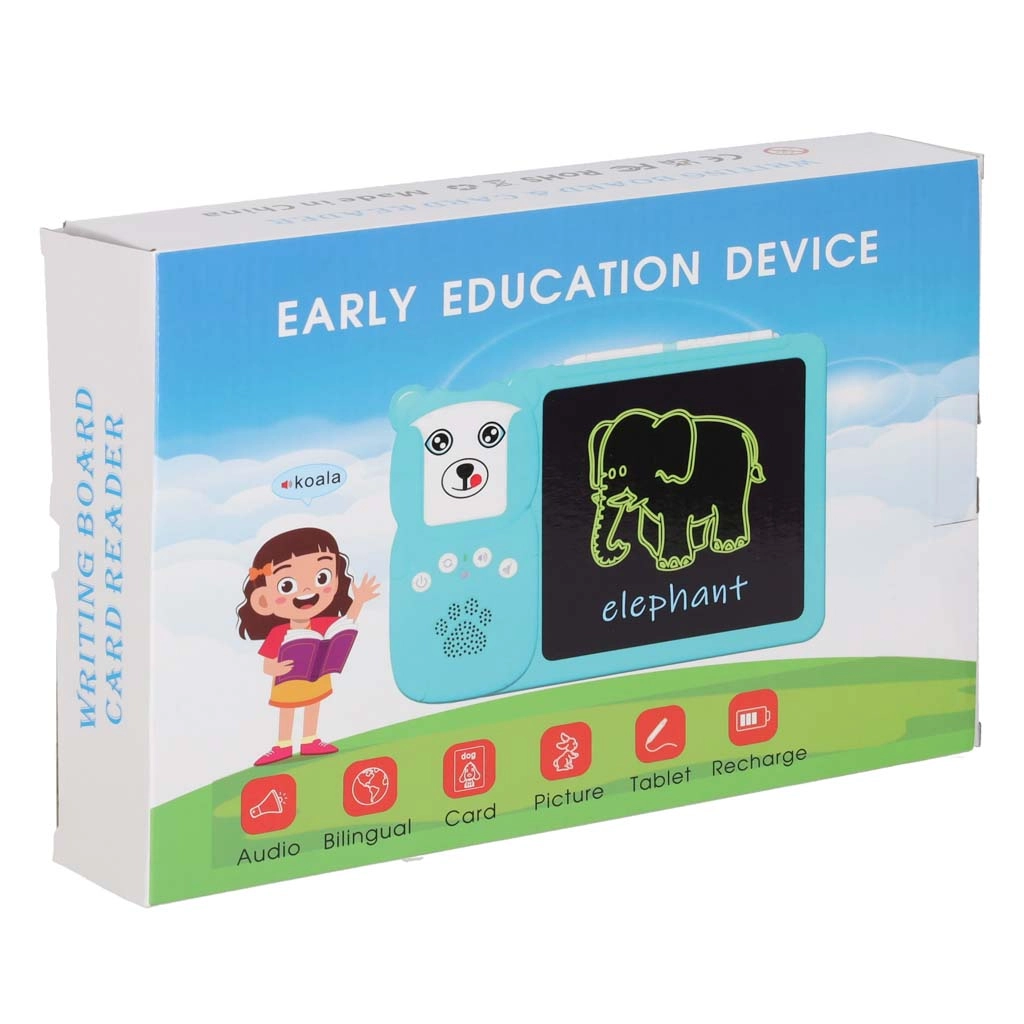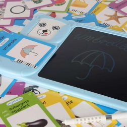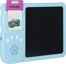 Interaktyvus skaitytuvas su LCD lenta lavina žodyną, tarimą ir smulkiąją motoriką. Tereikia įdėti kortelę ir įrenginys atkurs taisyklingą angliško žodžio tarimą – pasirinktose kategorijose (gyvūnai, transportas) jį papildo linksmi garsiniai efektai. 8" LCD ekrane vaikai kartu lavina rašymą, piešimą ir užrašus naudodami pridedamą stylusą.