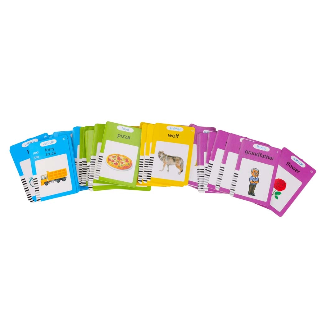 Įdėkite kortelę į skaitytuvą ir klausykitės taisyklingo angliško tarimo. Gyvūnų ir transporto kategorijas papildo realistiški garsai, kad įsiminimas būtų dar geresnis.