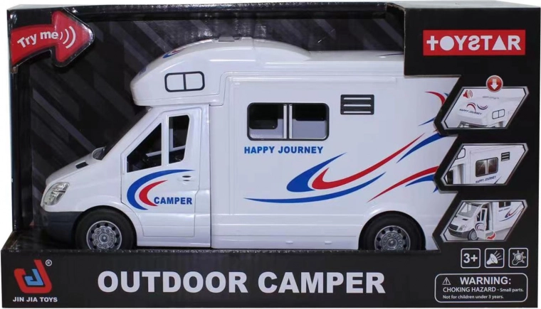 Šis realistiškai sukurtas kemperis pradžiugins mažuosius vairuotojus detalėmis ir funkcijomis. Vidaus erdvė nušvinta mirksinčia šviesa, o ant stogo yra muzikinis pultas su autentiškais užvedimo, važiavimo, signalo ir durų uždarymo garsais. Dėl atsidarančių durų ir stogo vaikai lengvai kurs ir pratęs savo žaidimų istorijas.