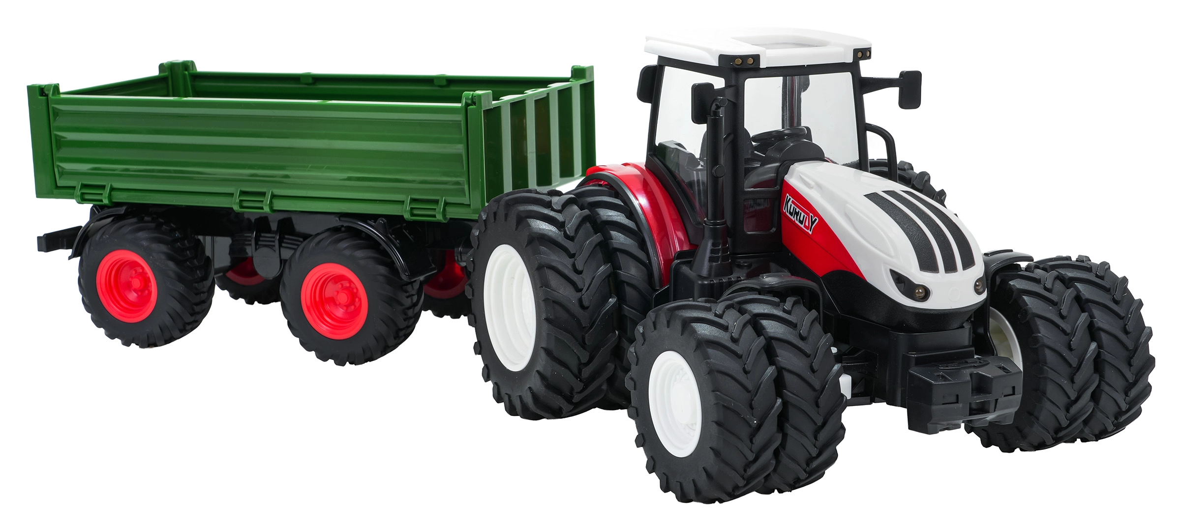 Šis linksmas ir patvarus RC traktorius puikiai tinka mažiesiems ūkininkams. Dėl 2,4 GHz dažnio valdymas išlieka sklandus net didesniu atstumu, o dideli guminiai ratai užtikrina gerą sukibimą su įvairiais paviršiais. Kabinos ir priekinių žibintų apšvietimas suteikia daugiau realistiškumo ir matomumo žaidžiant.