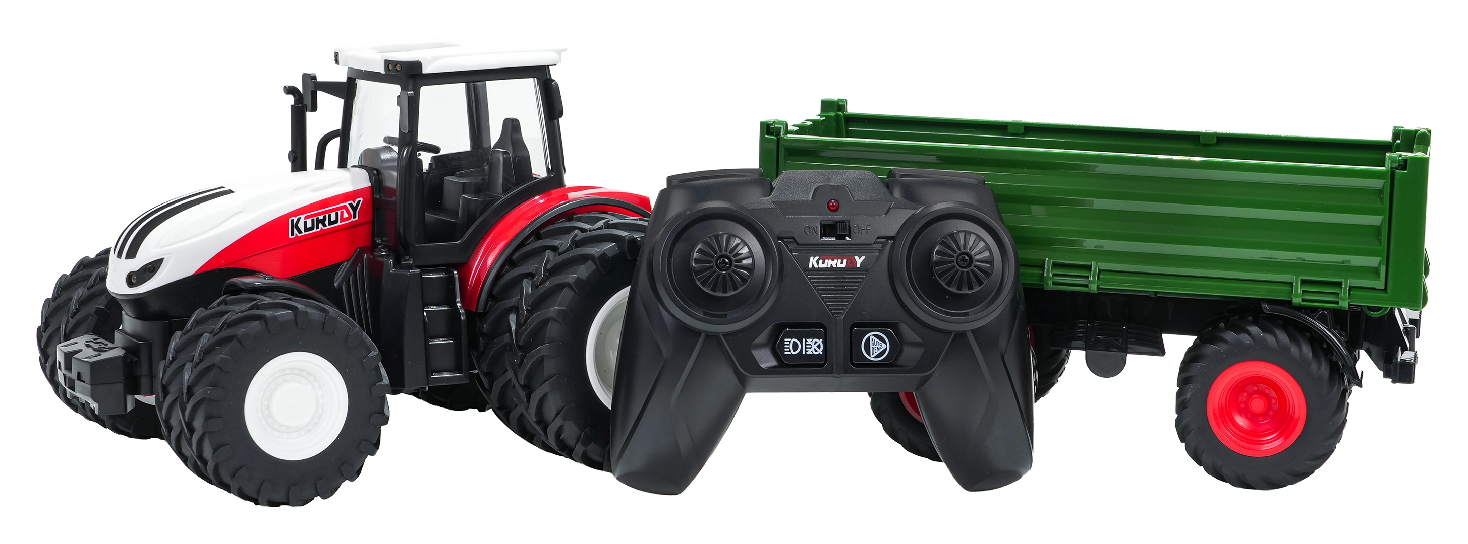 Stabili 2,4 GHz dažnių juosta užtikrina jautrų valdymą be trukdžių. Traktorius važiuoja pirmyn, atgal, į kairę ir į dešinę, o dėl didelių guminių ratų įveikia įvairius paviršius.