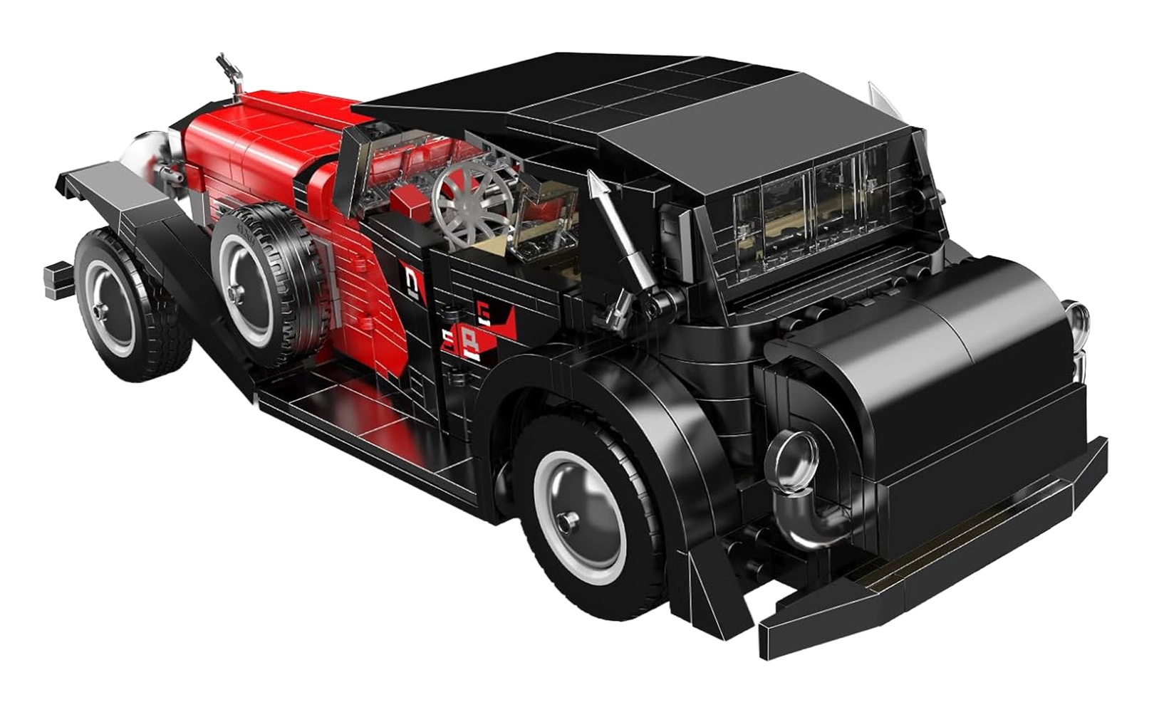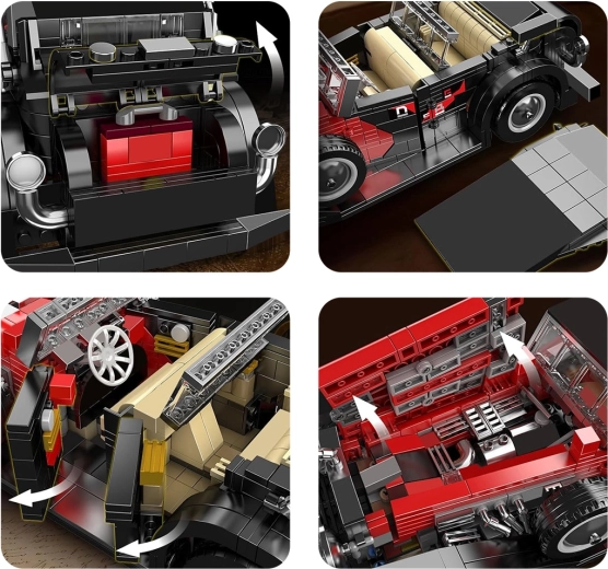 Šis detalus istorinio automobilio modelis elegantiškoje juodai raudonoje derinio versijoje pradžiugins kiekvieną klasikinių automobilių ir konstruktorių gerbėją. Tvirta konstrukcija, ištikima silueto forma ir apgalvotos interjero bei eksterjero detalės užtikrina įdomų statymo procesą ir įspūdingą ekspozicinį eksponatą.