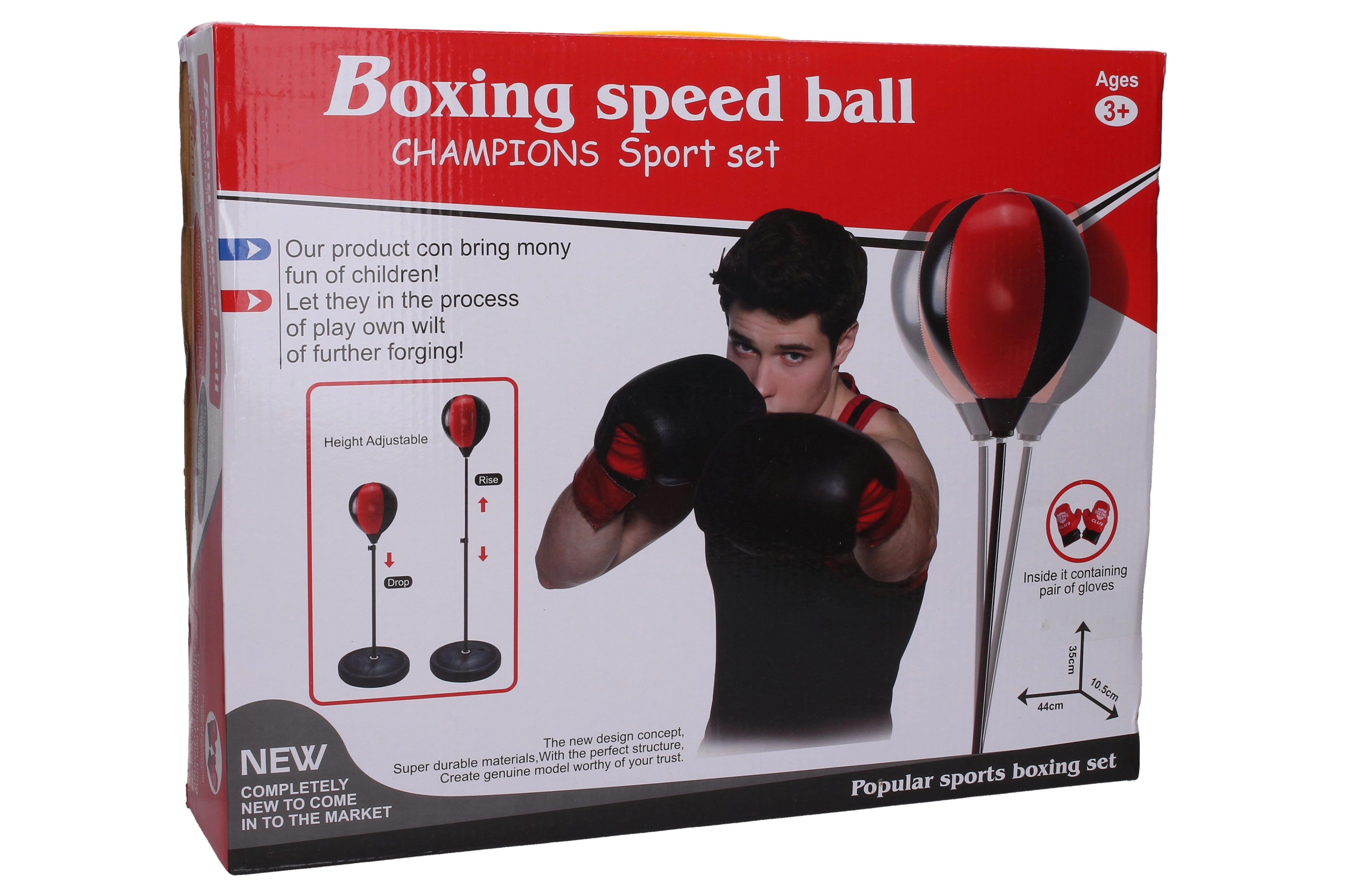Šis praktiškas bokso rinkinys – puikus pasirinkimas namų treniruotėms, greičio, tikslumo ir koordinacijos lavinimui. Dėl reguliuojamo 69–109 cm aukščio lengvai pritaikomas vaikams ir suaugusiesiems. Pakuotėje yra bokso pirštinės, pilnas montavimo rinkinys ir pompa greitam paruošimui.