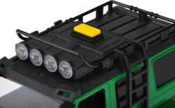 Leiskitės į bekelę! Šis detaliai sukurtas rinkinys sujungia žalią SUV su tvirtais ratais ir stogo bagažine bei praktiška priekaba motociklui vežti. Realistiški šviesos ir garso efektai kuria atmosferą, o atidaromos priekinės durys ir guminiai pasukami ratai suteikia daug pramogų ir sklandų judėjimą grindimis.